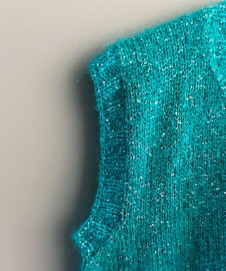 Il gilet è una costruzione bottom-up, quindi dal basso verso l’alto, ed è realizzato con ferri circolari in “tondo” fino allo scalfo manica, dopodiché si lavorerà ”in piano”.