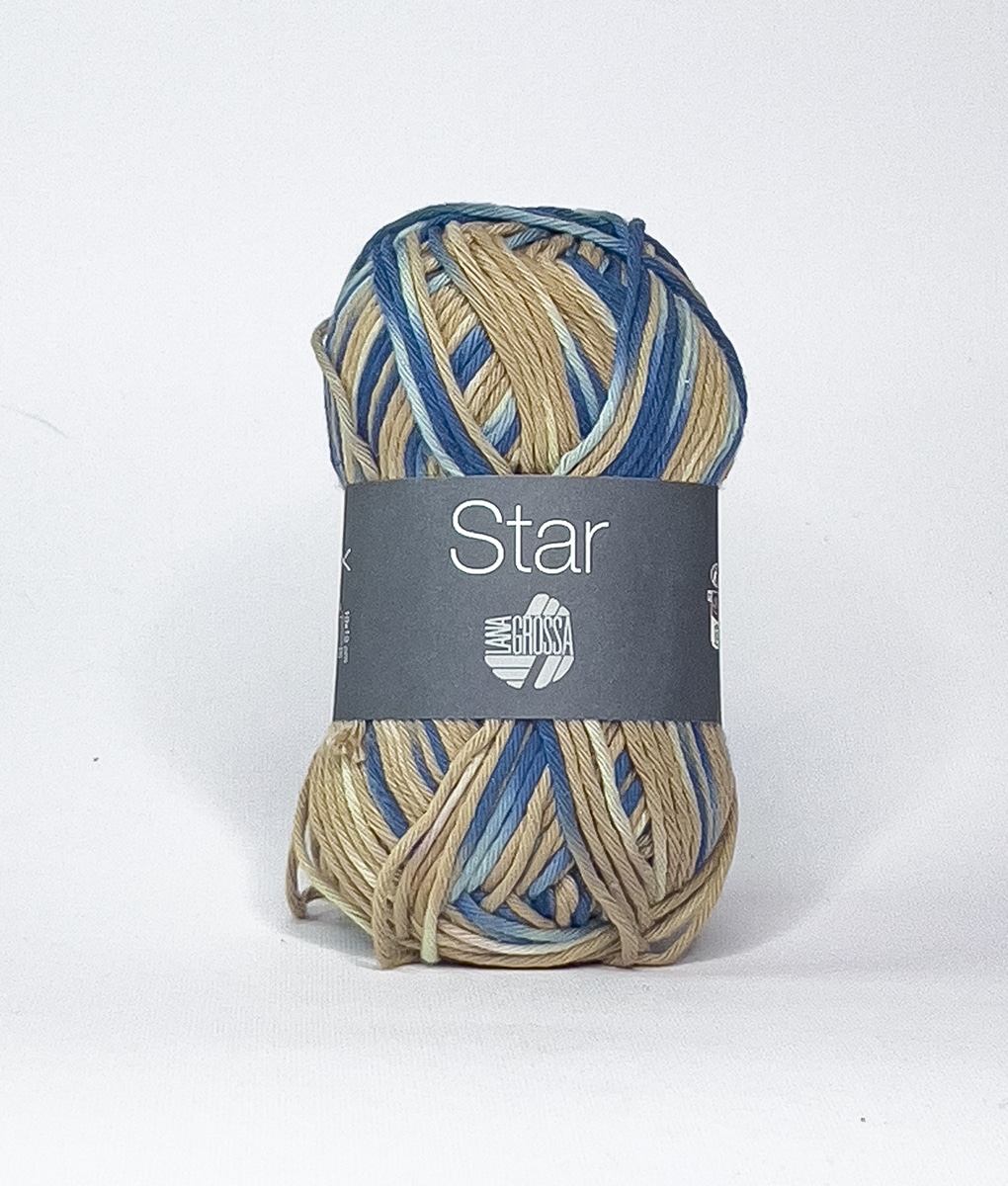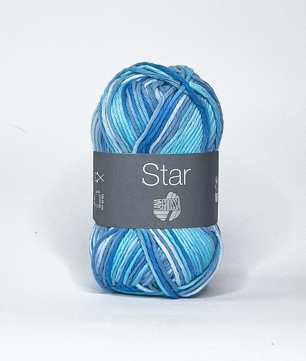 Lana Grossa Star Print è un filato in cotone naturale, ha uno spessore ideale per essere lavorato con i ferri 4,5.